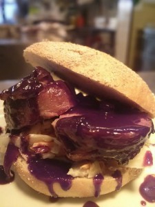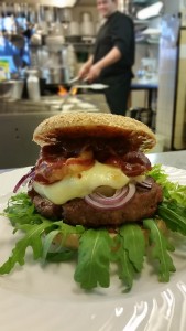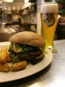 Gegrillt und vorher mit unserem Landbier mariniert und mit Honig glasiert! Dazu Knobi- und Salsa-Dip und unser Treberbrot