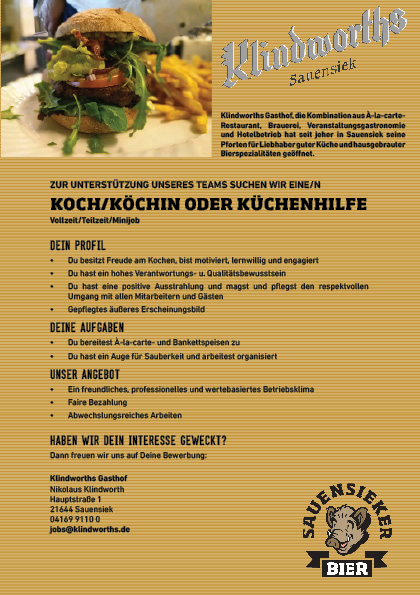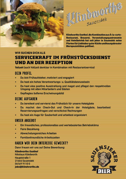Klindworths Gasthof wartet auf euch. Eure Chance ist jetzt da!